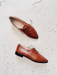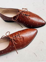 Zapato tipo Blucher en piel color cognac t mini tachas.