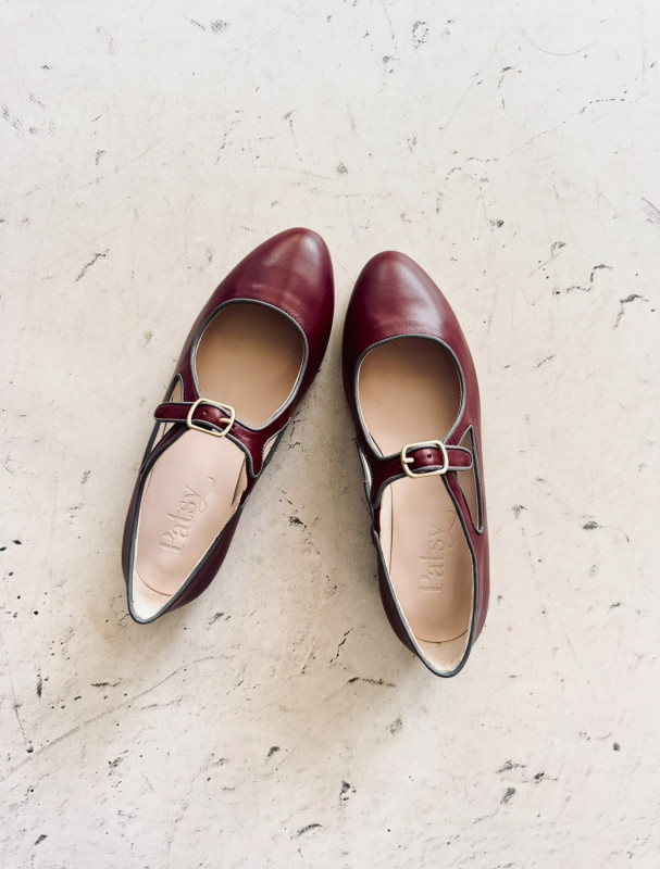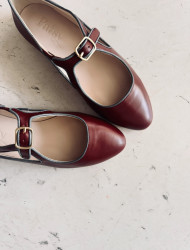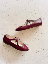 Mercedita de punta redondeada enpiel burdeos y gris.