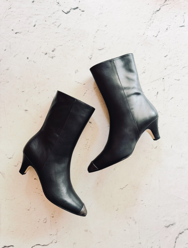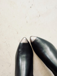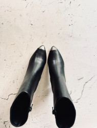 Botin acabado en punta en piel color negro con mini puntera plata.