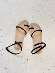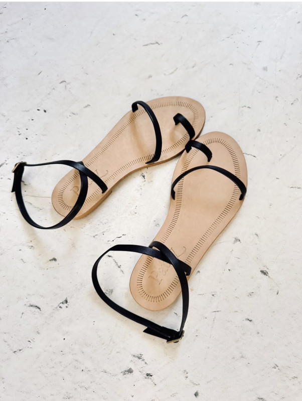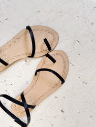 Sandalia plana de tiras finas de piel color negro.