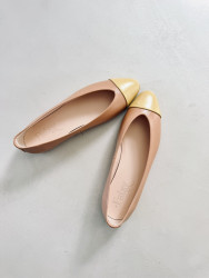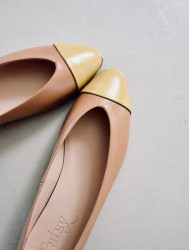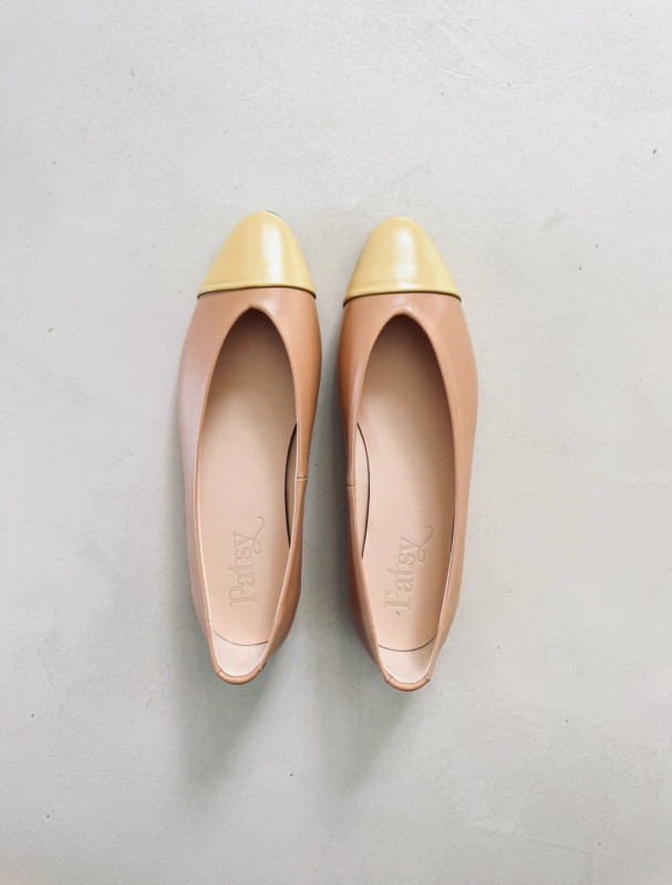 Bailarina plana de piel color nude con puntera color limón.