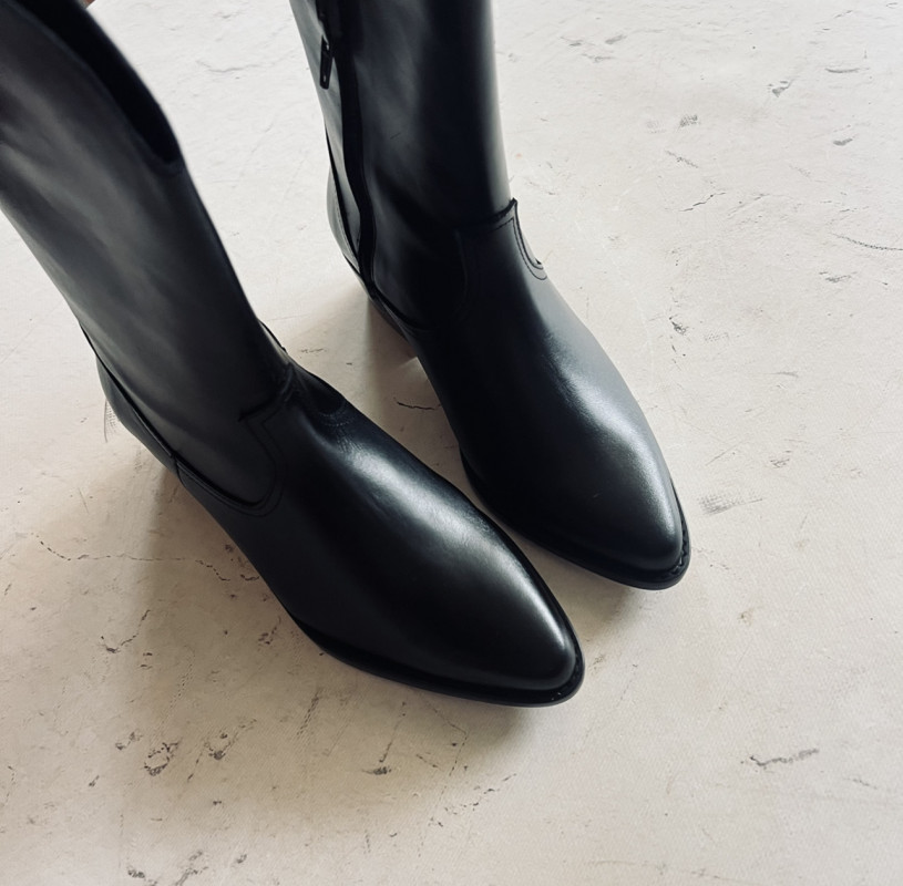 Bota de corte actual tipo cowboy en piel negro.