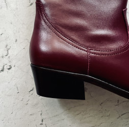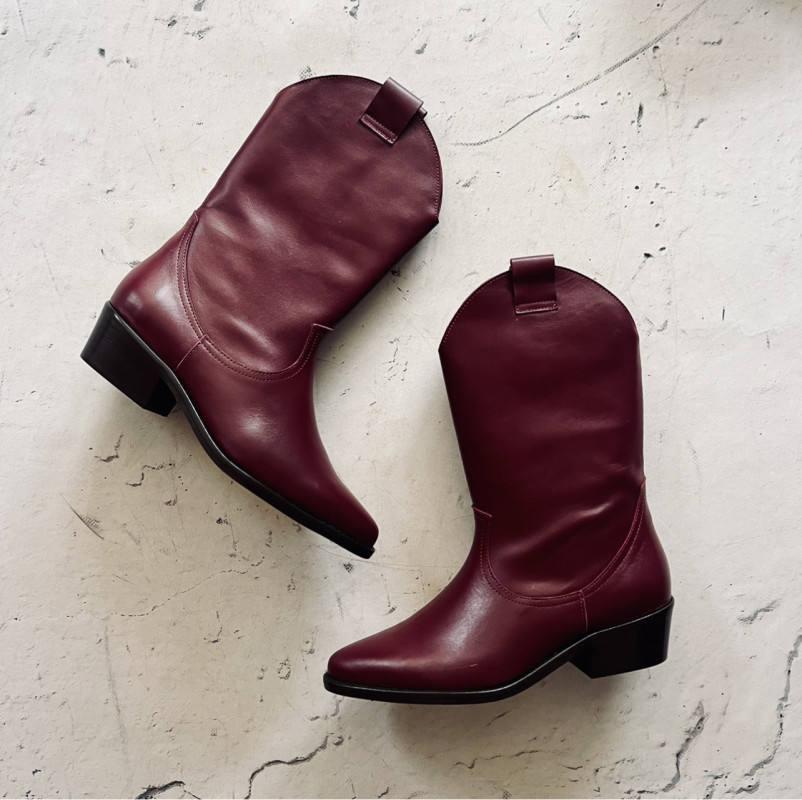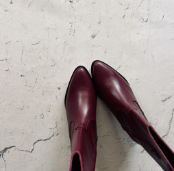 Bota de corte actual tipo cowboy en piel color burdeos.